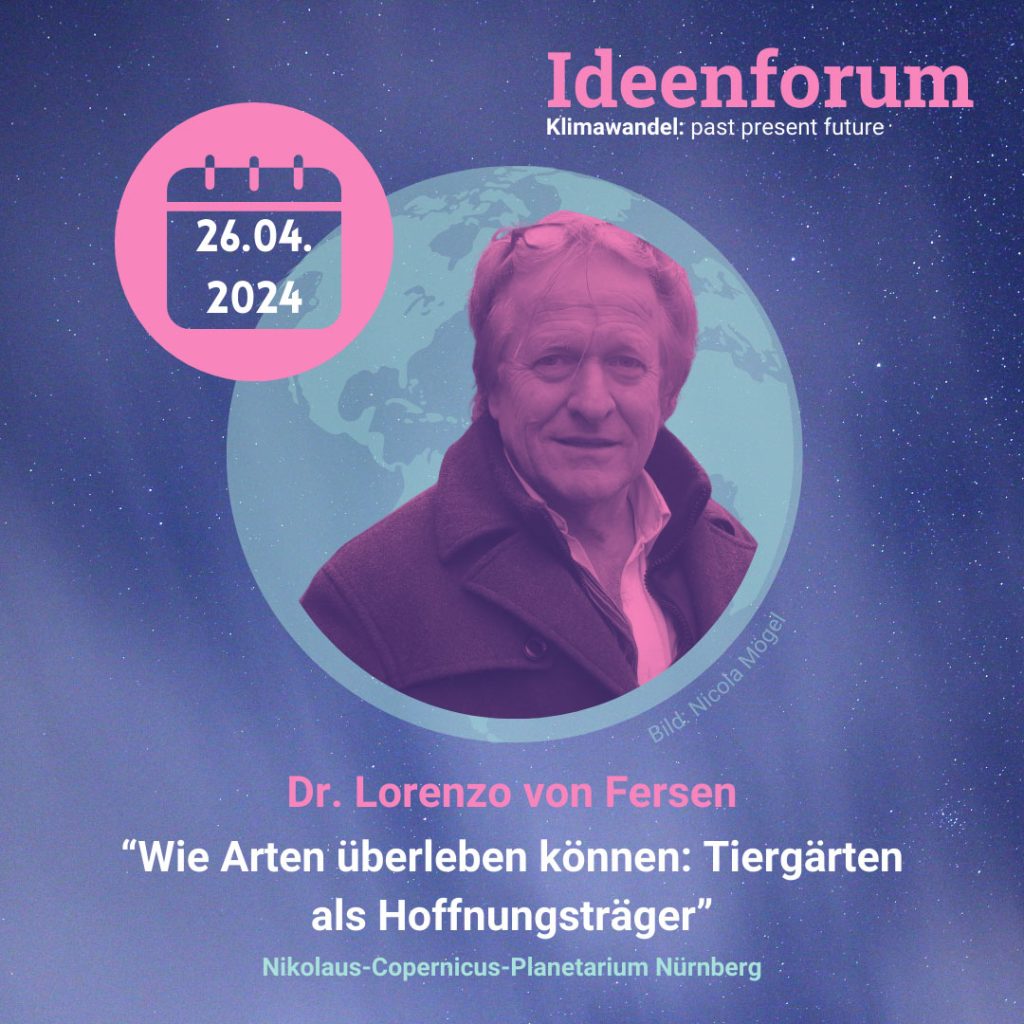 Der Klimawandel ist eine Bedrohung für die Zukunft unseres Planeten. Laut dem Bericht des Weltklimarats IPCC könnte ein Temperaturanstieg von 1,5 Grad zum Aussterben von etwa 20 bis 30 Prozent aller Arten führen. Welchen Einfluss diese Veränderungen auf die Biodiversität und auf einzelne Arten haben, gibt es in drei spannenden Vorträgen zu erfahren. Die wichtige Rolle, die Zoos dabei zukommt, beleuchtet Dr. Lorenzo von Fersen in seinem Key Note Vortrag. Gemeinsam blicken wir auf vergangene, aktuelle und zukünftige Entwicklungen der Erde.